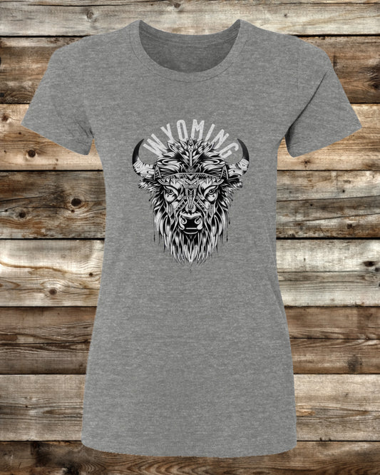WYOMING TRIBAL BISON - 3 COLORS - Ladies Cut T-Shirt