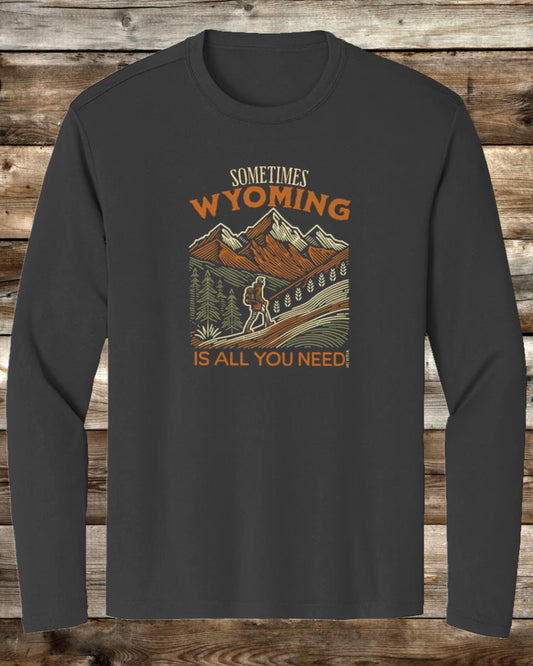 SOMETIMES WYOMING IS ALL YOU NEED - 3 COLORS - Premium Long Sleeve Performance T-Shirt